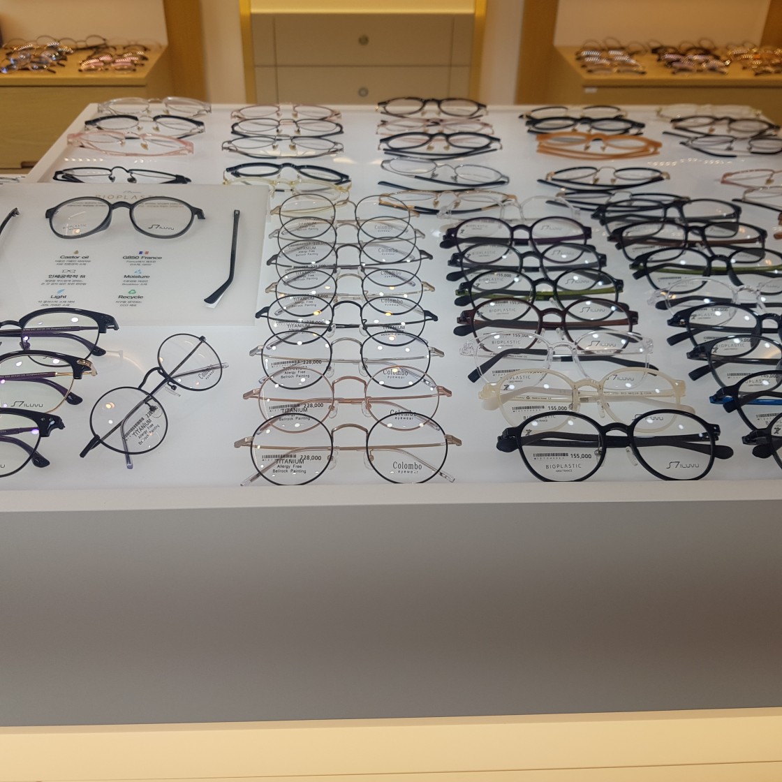 구찌, 넛지, 듀퐁, 독스, 그레이트, 몽블랑 같은 유명한 브랜드의 안경과 선글라스가 다양하게 구비 되어 있고,