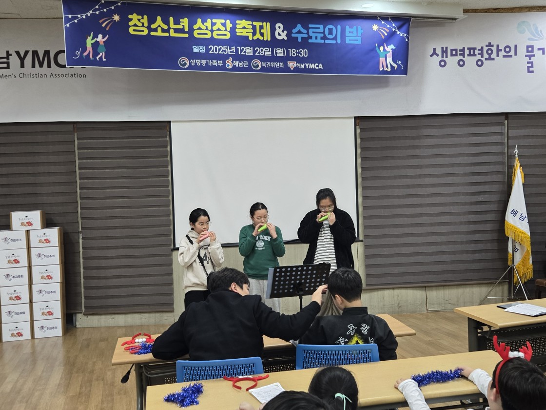 2025년 12월 29일 해남YMCA 3층 행촌홀에서 청소년 성장 축제 및 수료의 밤 행사가 진행되었습니다.