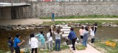 미생물이 발효된 흙을 하나씩 집어서 하천에 시원하게 던지며 하천을 살리는 발걸음에 다가갔습니다.