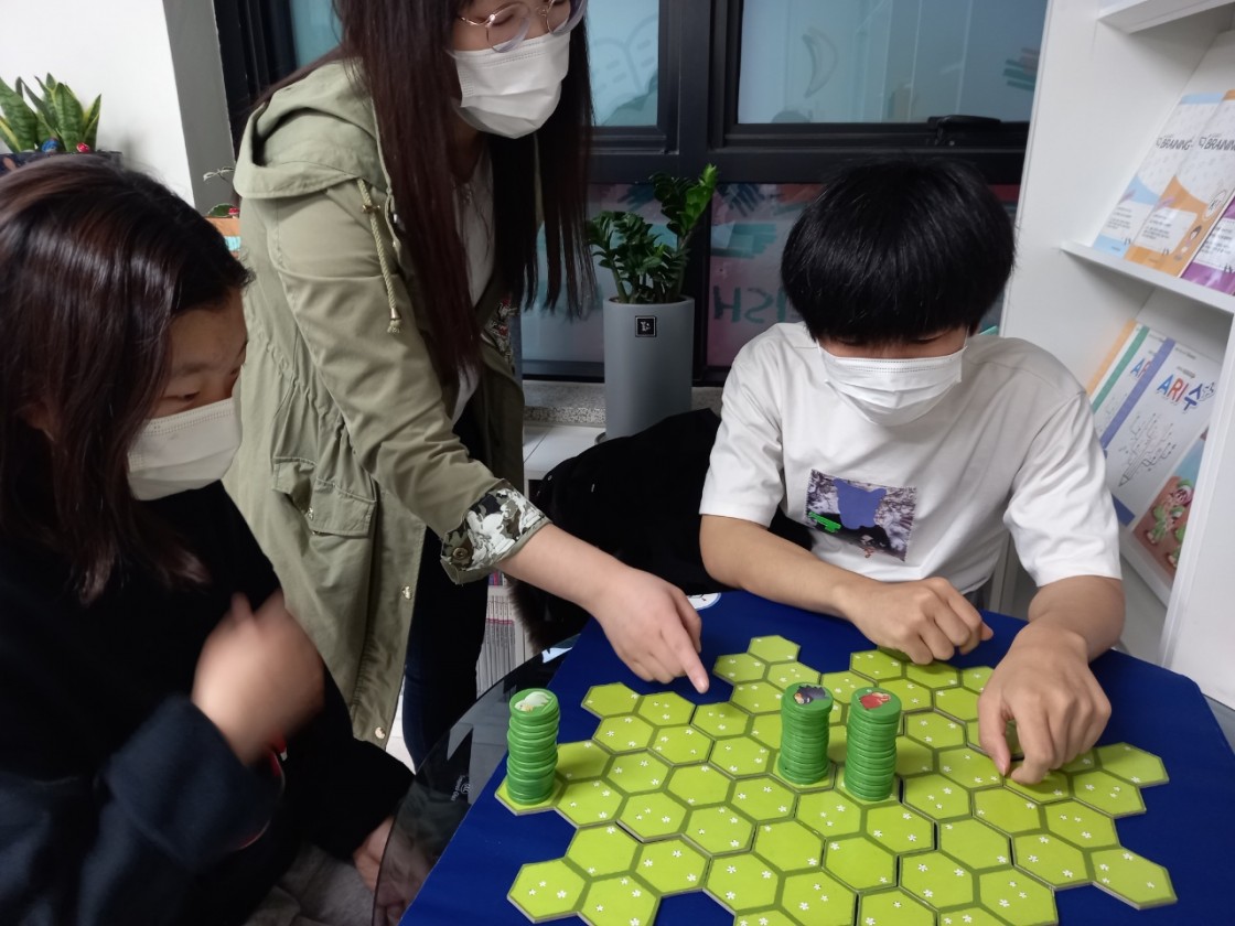 순서대로 양코인을 이동하면서 자신의 양코인이 타일에 가장 많이 배치된 사람이 이기는 게임입니다.