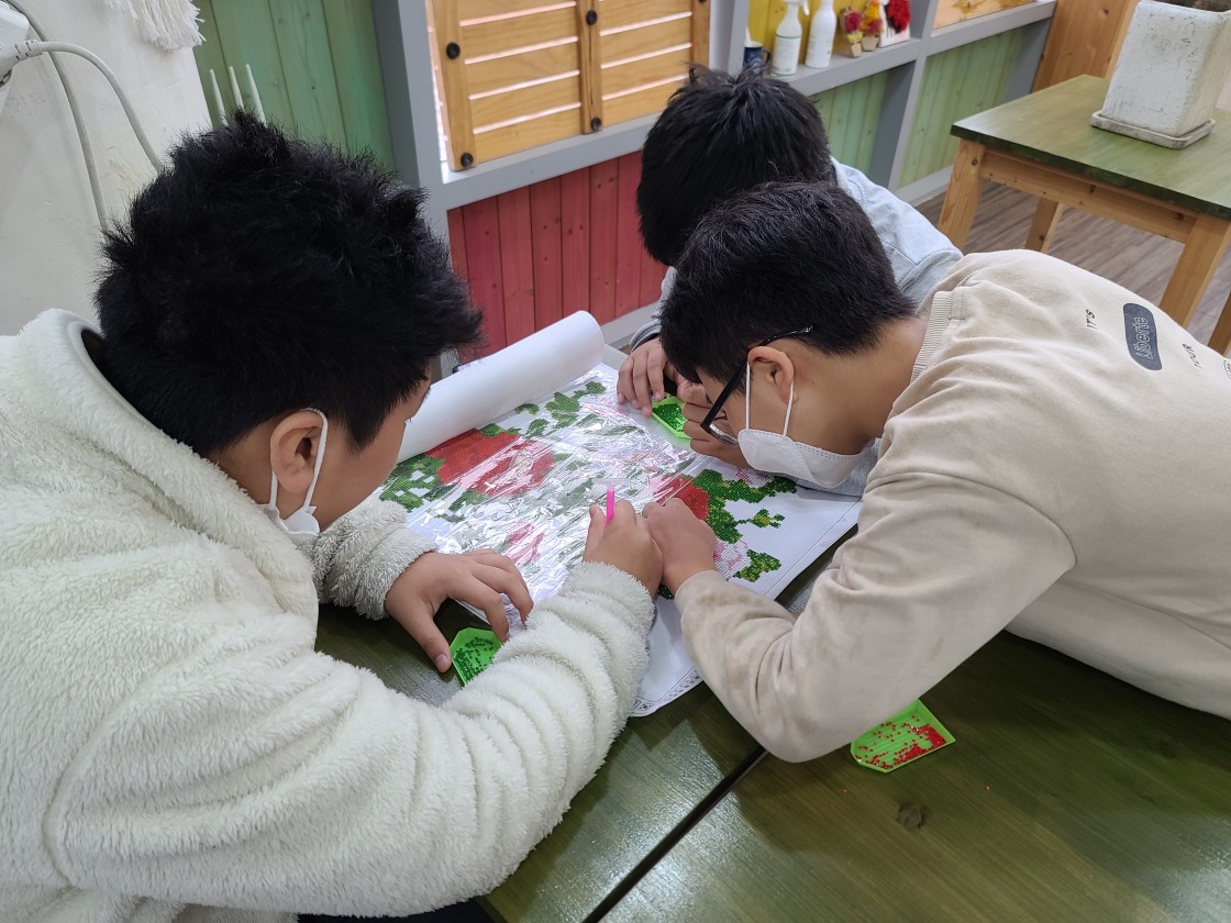 YMCA 1층 일자리카페를 빌려 16일날 했던 보석십자수 만들기를 이어서