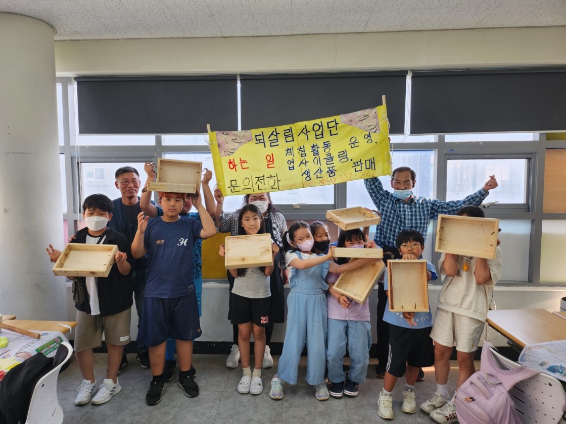 방과후아카데미 꿈터 청소년들 중 각 10명씩과 업사이클링 목공예활동을 진행하였습니다.