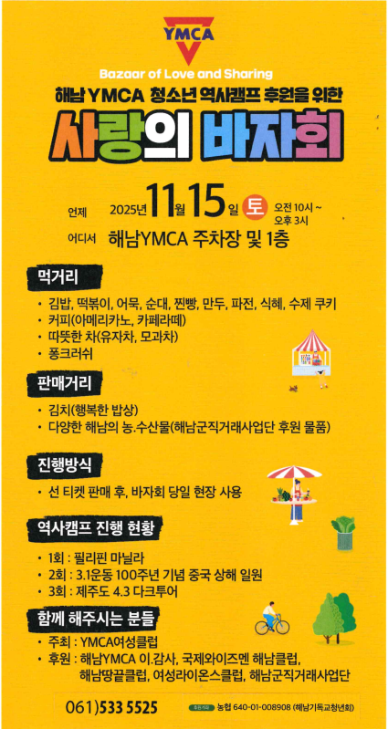 해남 YMCA 청소년 역사캠프 후원을 위한 사랑의 바자회 진행합니다~