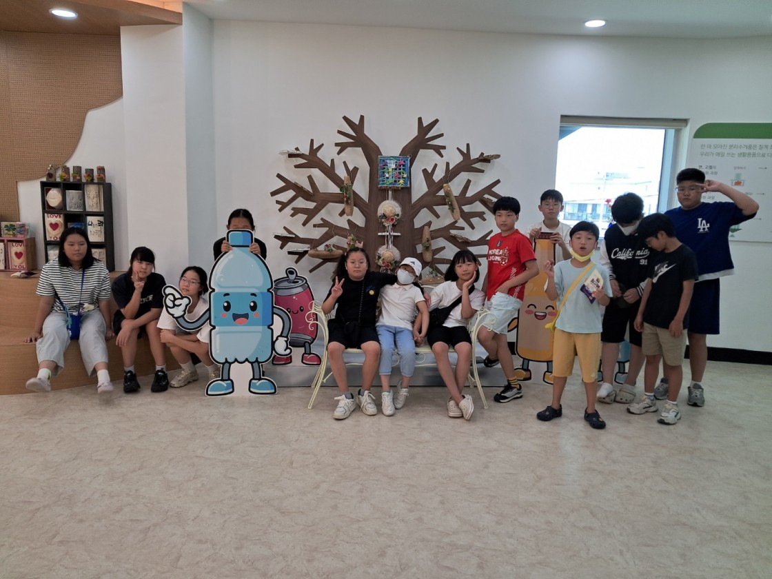 재활용할 수 있는 물건들(플라스틱, 유리, 캔, 종이 등)로 만들 수 있는 다양한 제품들과 청소년들에게 자원순환과