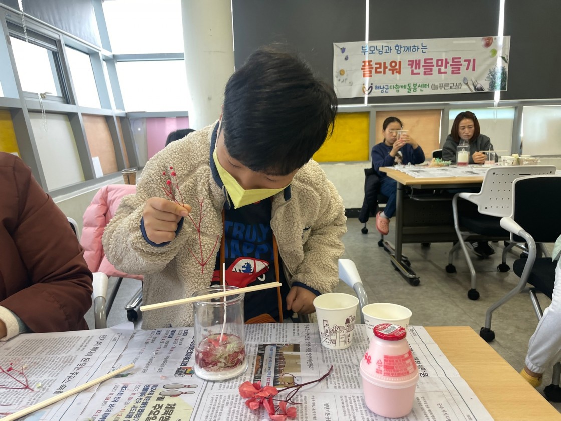 해남군다함께돌봄센터 | 다함께돌봄센터 1호점 가족프로그램 " 플라워 캔들 만들기"
