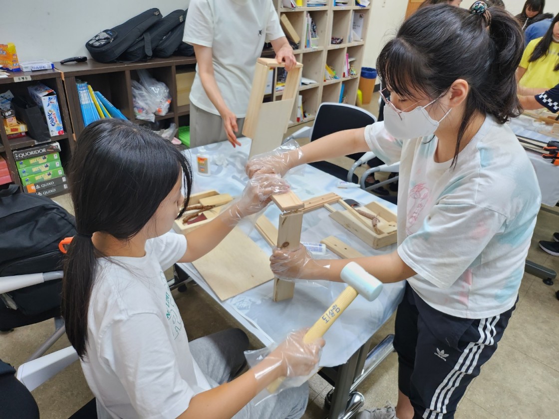방과후아카데미 꿈터 청소년들 중 각 10명씩과 업사이클링 목공예활동을 진행하였습니다.