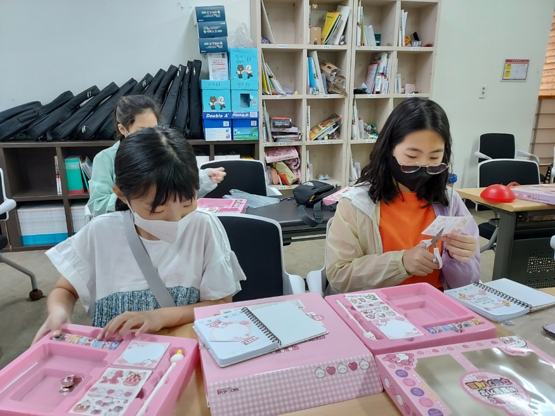 이번 체험은 3가지의 부스로 다이어리 꾸미기, 공기 로켓 만들기, 비즈 공예를 운영되었으며