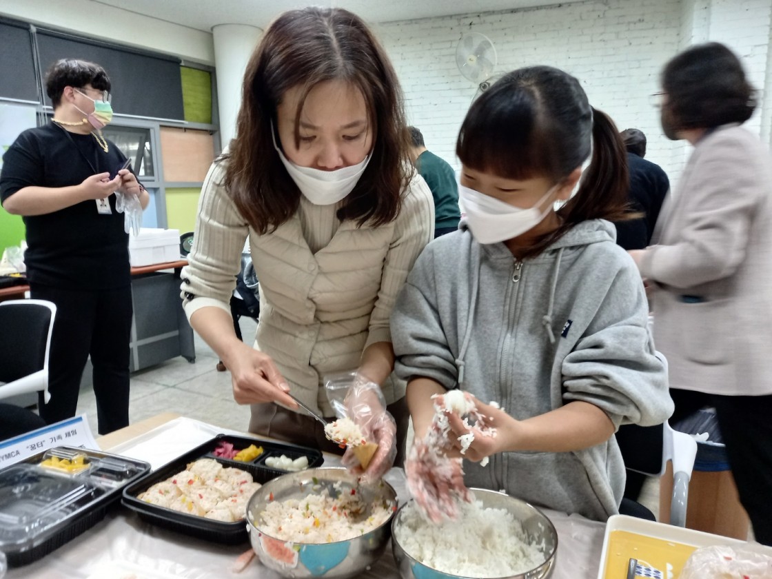 부모님과 함께 만드는 시간을 가져보았습니다. 청소년들이 밥을 뭉치는 것이 어려워 부모님께서
