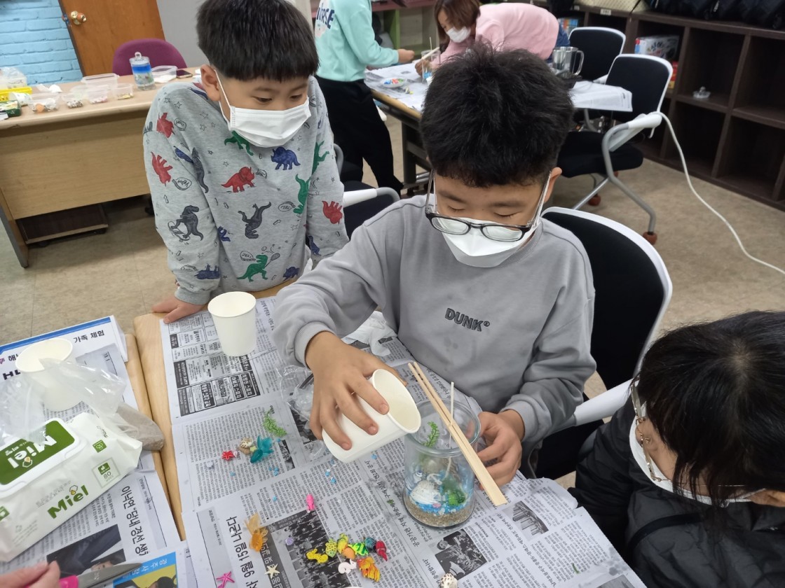 캔들 만들기는 강사님이 준비하신 캔들에 바닷속을 만들어 보는 시간을 가져보았습니다.