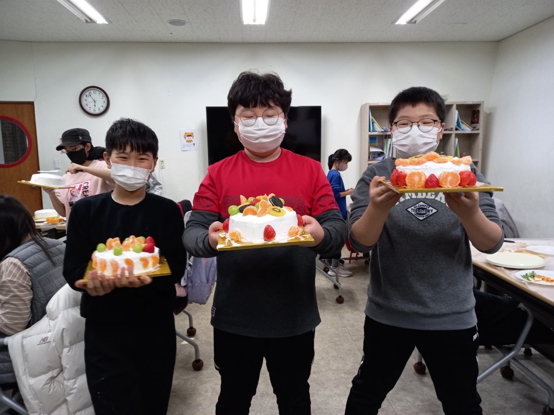 12월 10일(금) 해남YMCA 2층 파란하늘반에서 케이크 만들기를 진행하였습니다.