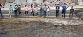 미생물이 발효된 흙을 하나씩 집어서 하천에 시원하게 던지며 하천을 살리는 발걸음에 다가갔습니다.