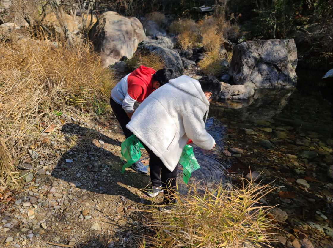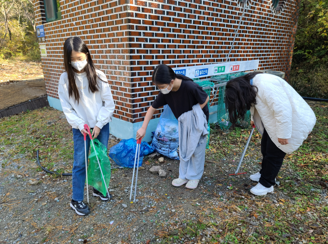 봉사동아리 친구들은 다리 밑의 계곡과 산책로를 따라 형성된 길 주변의 쓰레기를 줍고 환경정화 활동을 하였습니다.